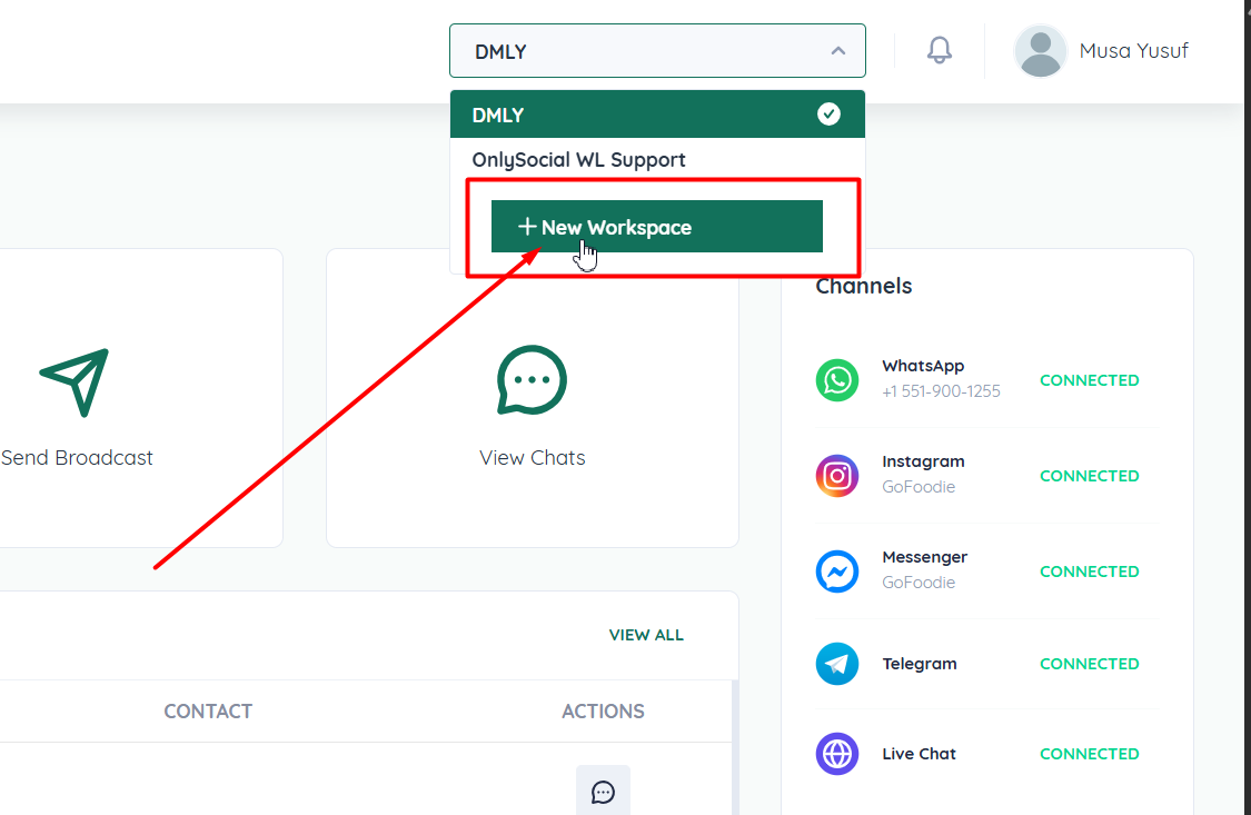 A workspace is where all your conversations, channels, contacts, automations, and team members are managed. Every business, brand, or client should have its own workspace.