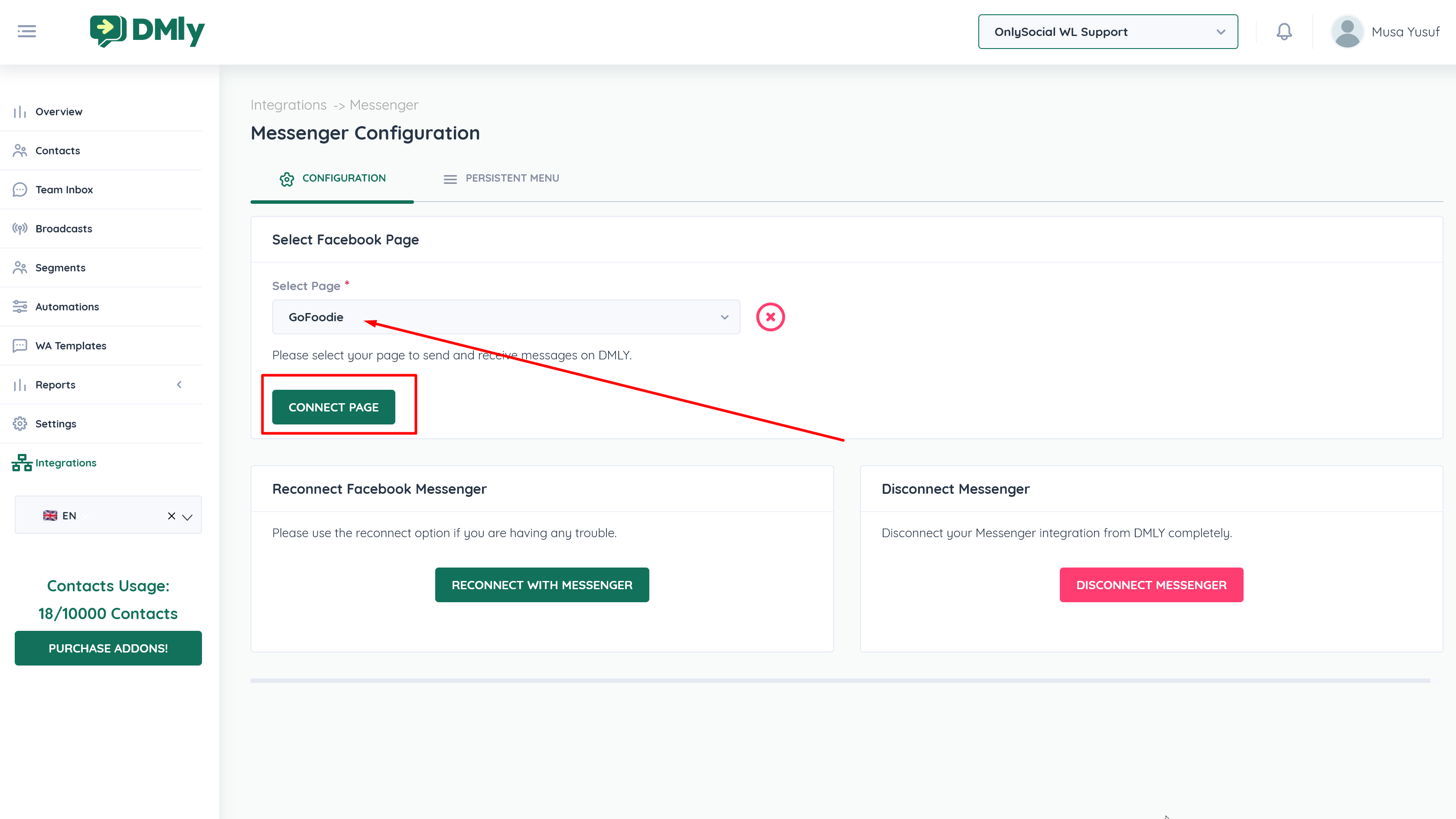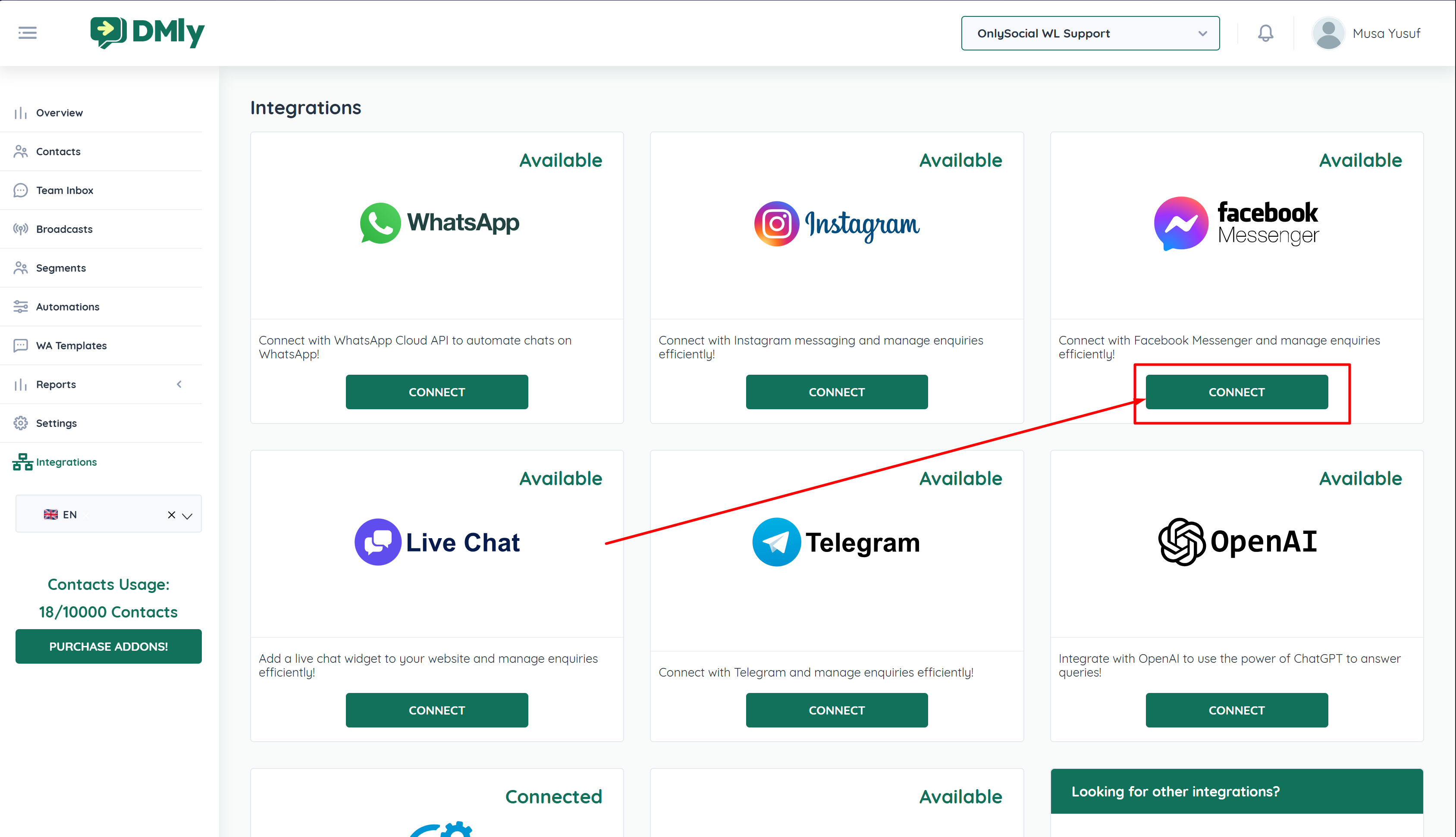 Steps to Connect Facebook MessengerOpen the DMLY dashboard.