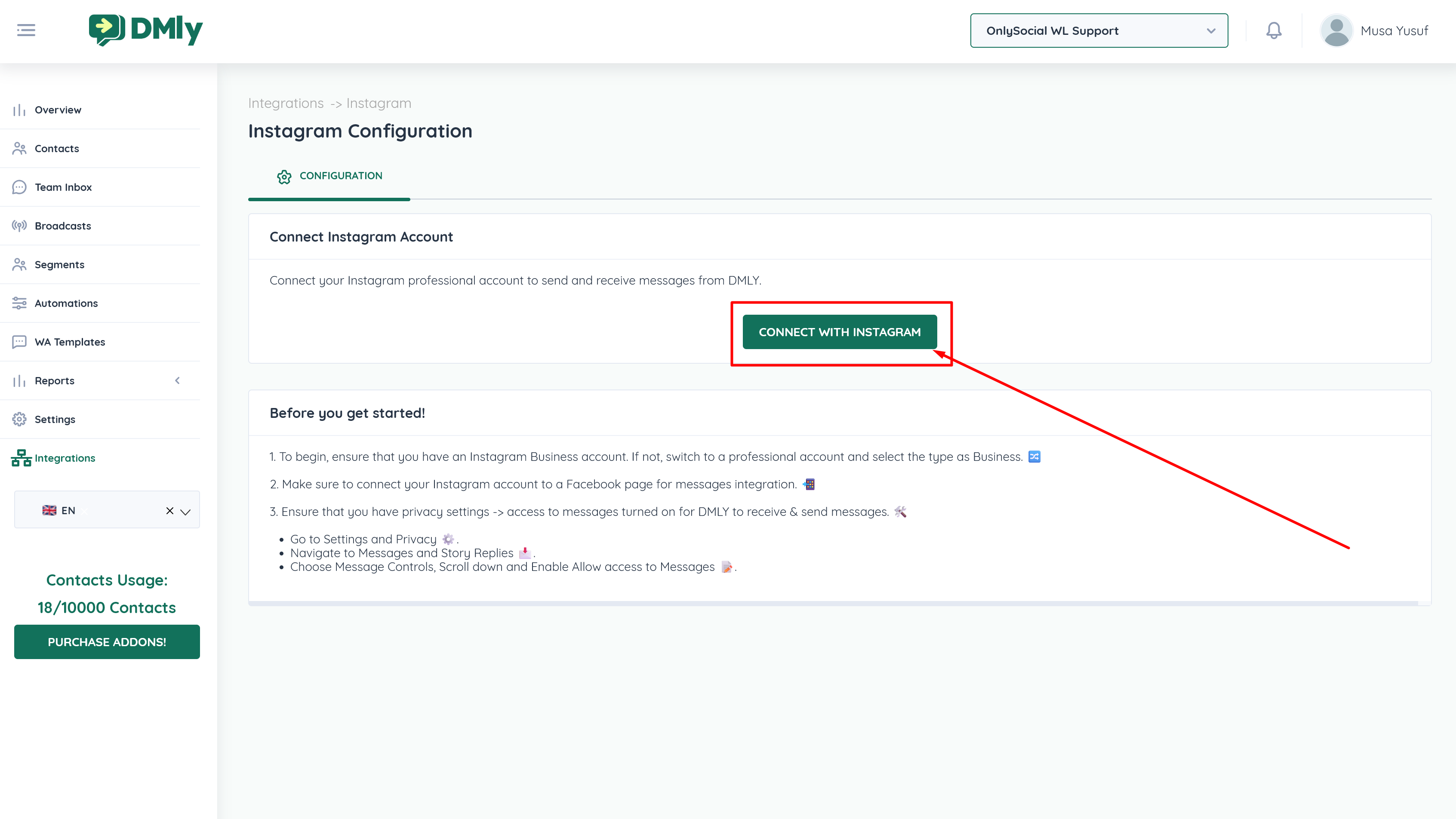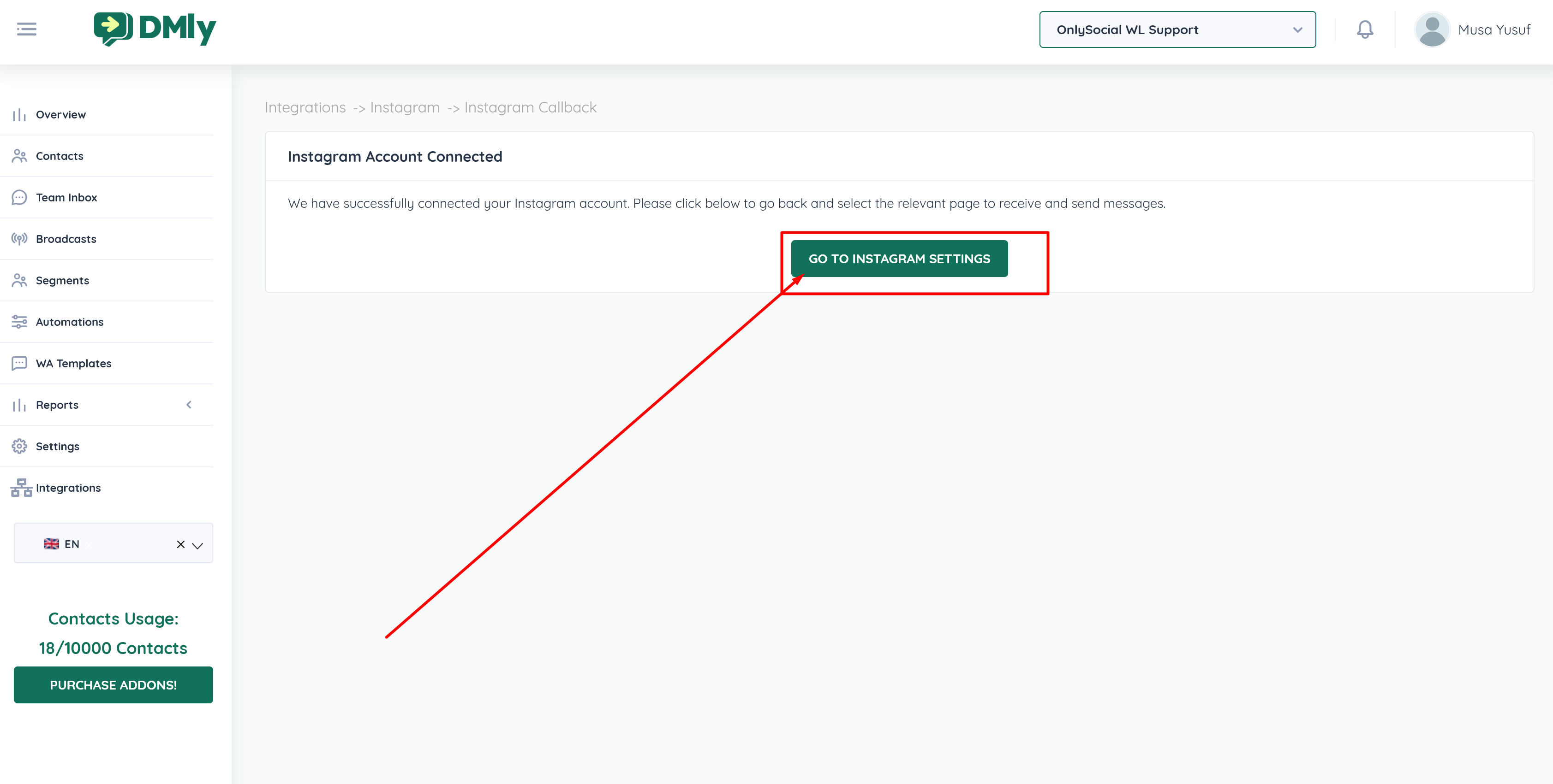 Without this setting enabled, DMLY cannot receive Instagram messages.