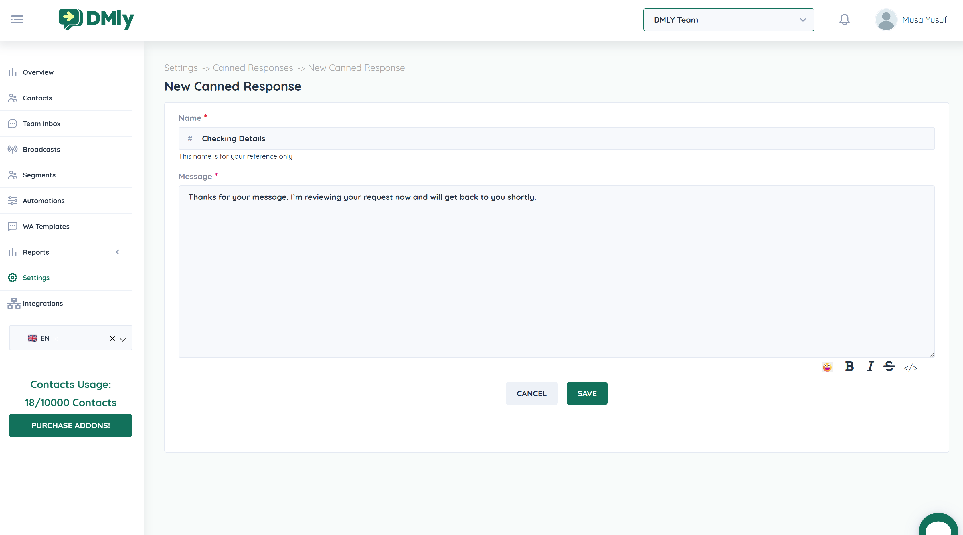 How to Create a Canned ResponseNavigate to Settings → Canned Responses